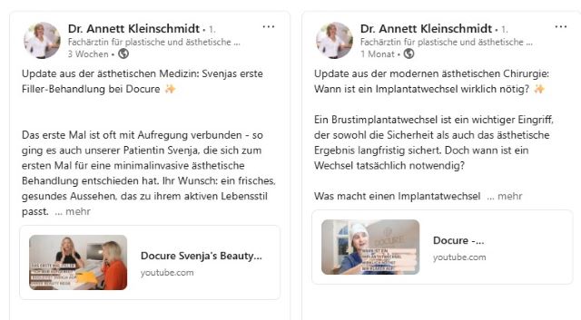 Zusammenfassend kann ich sagen, dass eine gut durchdachte Social-Media-Strategie für den nachhaltigen Erfolg meiner Plastisch- chirurgischen Praxis auf einem stark umkämpften Marktsegment trotz hoher Fachexpertise als Plastische Chirurgin entscheidend ist. Indem wir gezielte Inhalte erstellen und die Interaktionen mit meiner Zielgruppe fördern, positionieren meine Marke Docure und mich als Fachärztin als kompetente Adresse für ästhetische und plastisch- chirurgische Behandlungen.