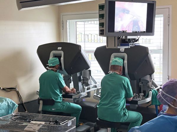 „Die Verbindung des Roboters mit der Patientin ist deutlich unkomplizierter als mit einem Multi-Port (MP). Zudem können wir mit einem Zugang sowohl im Unter- als auch im Oberbauch operieren“, zeigt sich der Leitende Oberarzt Dr. Zaher Alwafai begeistert. Auch die Beweglichkeit ist ein entscheidender Faktor, wie Alwafai ergänzt: „Dadurch, dass die Patientin nur an einem Punkt mit dem Roboter verbunden ist, haben wir viel mehr Möglichkeiten, die Lage der Patientin während der Operation anzupassen. Das ist mit einem Multi-Port sehr viel komplizierter.“