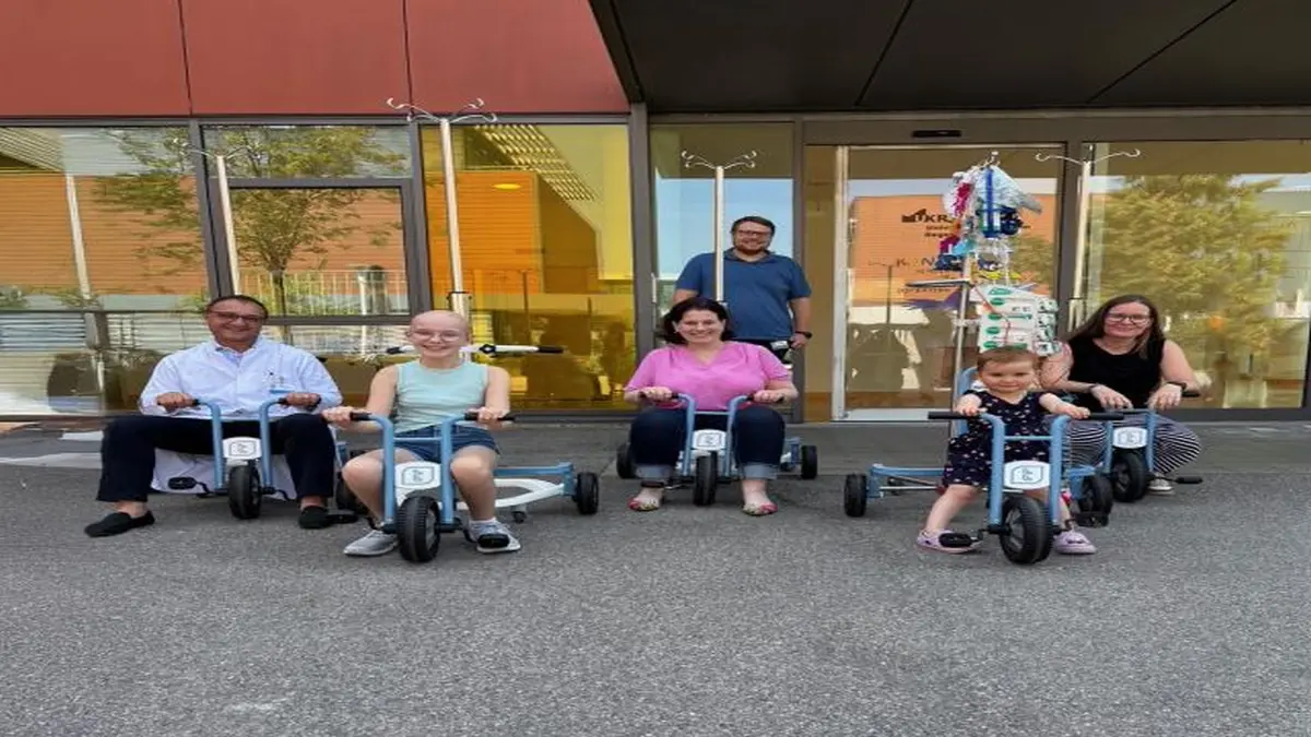 Große Freude bei den jungen Patient*innen der Pädiatrischen Hämatologie, Onkologie und Stammzelltransplantation am Universitätsklinikum Regensburg: Ab sofort können sie fünf sogenannte „Infuuts“ nutzen. Diese neuartigen Dreiräder vereinen Infusionsständer und Fahrzeug in einem und sorgen so für mehr Mobilität und Sicherheit im Klinikalltag.